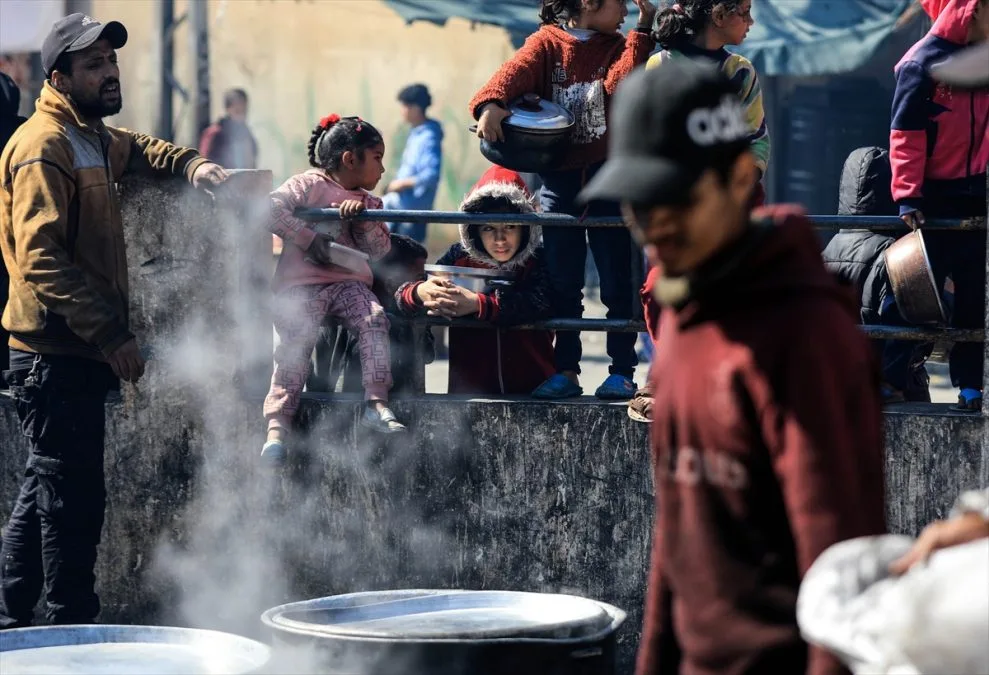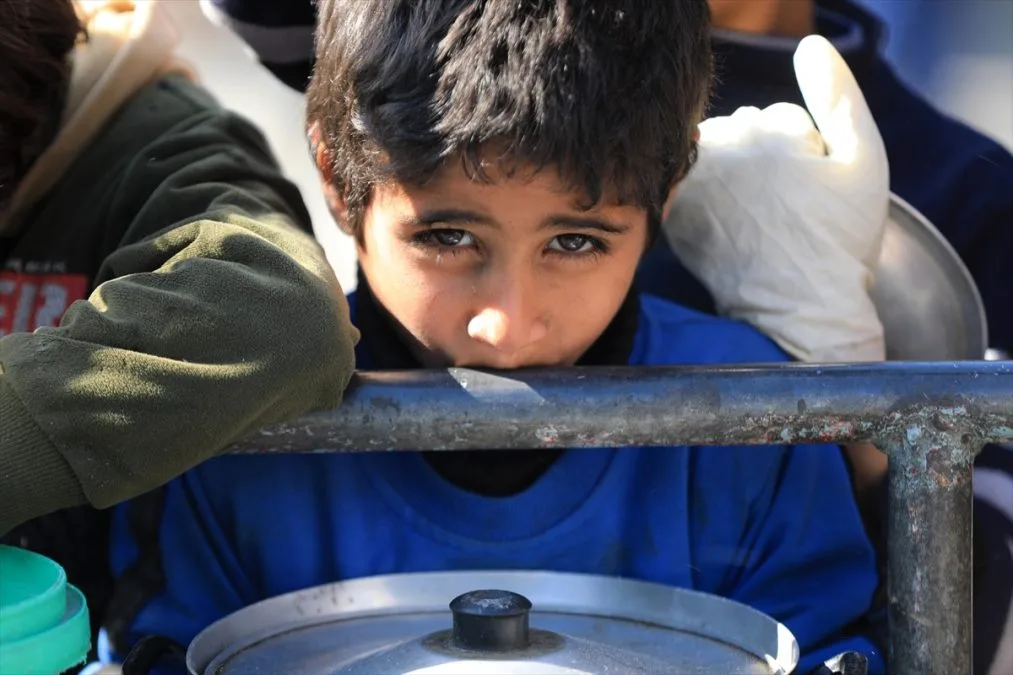 Djeca U Gazi čekaju Obroke Foto