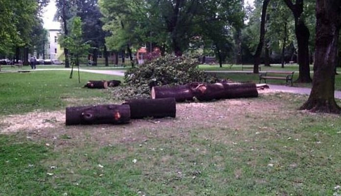 U Centralnom gradskom parku u Zenici je dana 26. jula 2016. godine iz sigurnosnih razloga, a u skladu sa čl. 93. Odluke o komunalnom redu („Službene novine općine Zenica“ br. 7/11) izvršena sječa dva potpuno suha, odumrla stabla crne topole (Populus nigra) i sječa jednog stabla javora mliječa (Acer platanoides).