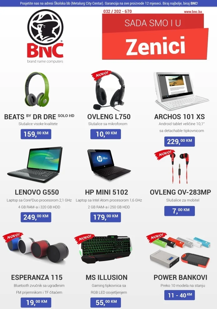 BNC ponuda brendiranih tableta i računara sa licenciranim operativnim sistemima ruši sve rekorde najpovoljnije ponude u BiH, a pogodnost kupovine sa odgodom plaćanja kao i mogućnost plaćanja na rate, stavlja ovu firmu u sami vrh najboljih.
