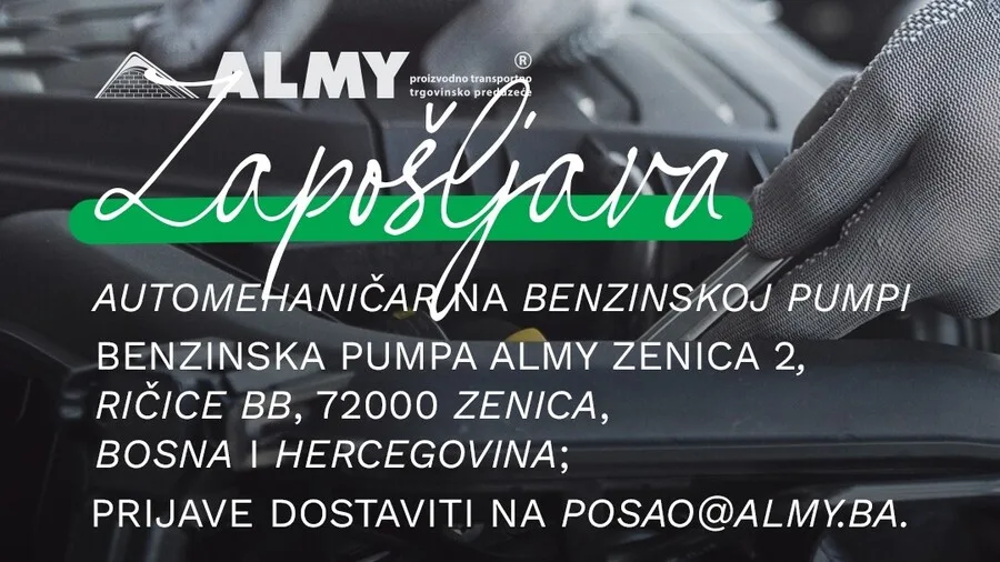 Almy d.o.o. Zenica objavljuje konkurs za prijem u radni odnos: