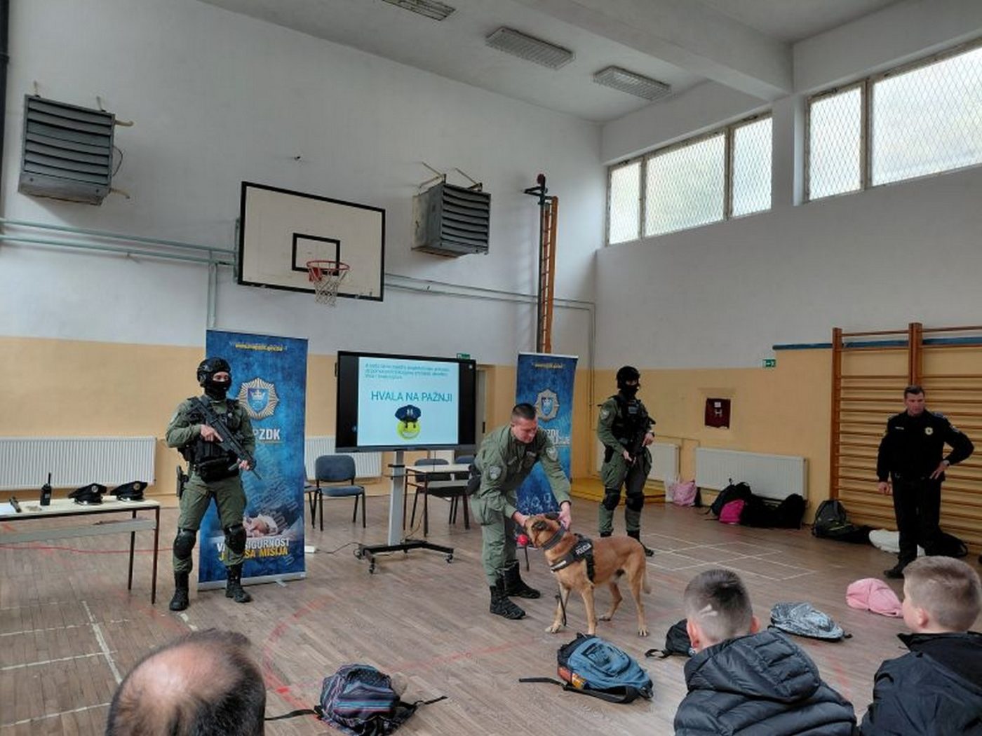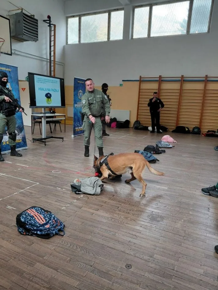 U nastavku realizacije projektnih aktivnosti održano je predavanje i radionica sa učenicima VI razreda Osnovne škole “Hamza Humo” Babino u Zenici, kojom prilikom je tim Specijalne policijske jedinice sa službenim psom demonstrirao pokaznu vježbu traženja i pronalaska otuđenog predmeta.