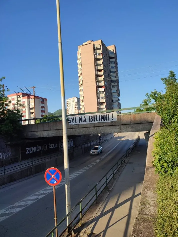 Na više lokacija širom grada osvanuli su transparenti s porukama poput “Bilino te zove”, “Svi na jug” i “Svi na Bilino”.