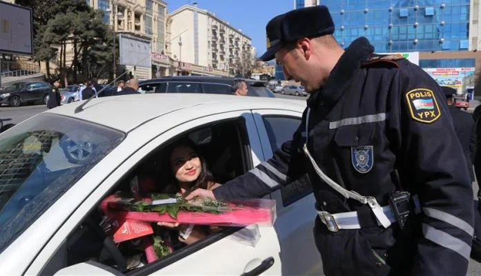 Riječ je o akciji koju je organizovala Uprava saobraćajne policije Bakua na ulicama ovog grada. Saobraćajni policajci zaustavljali su vozačice, a nakon toga, na njihovo iznenađenje, uručivali im poklone i cvijeće.