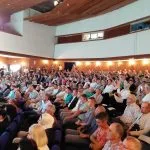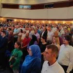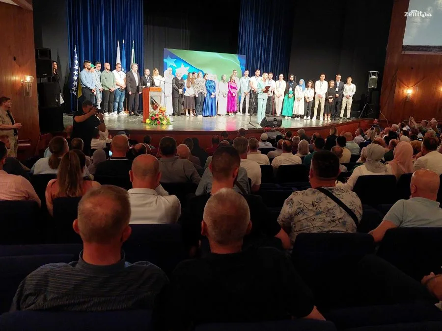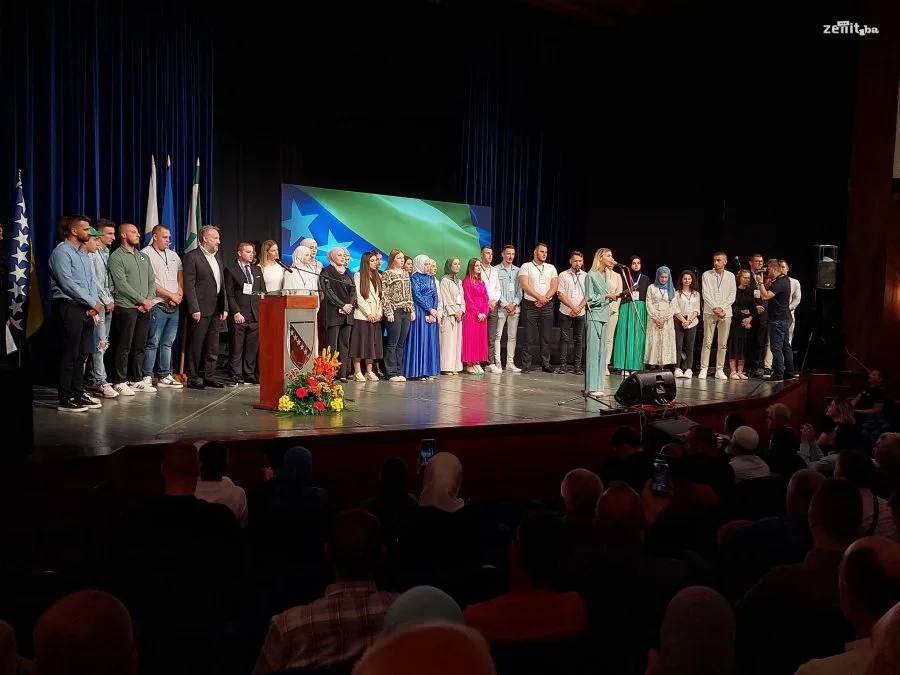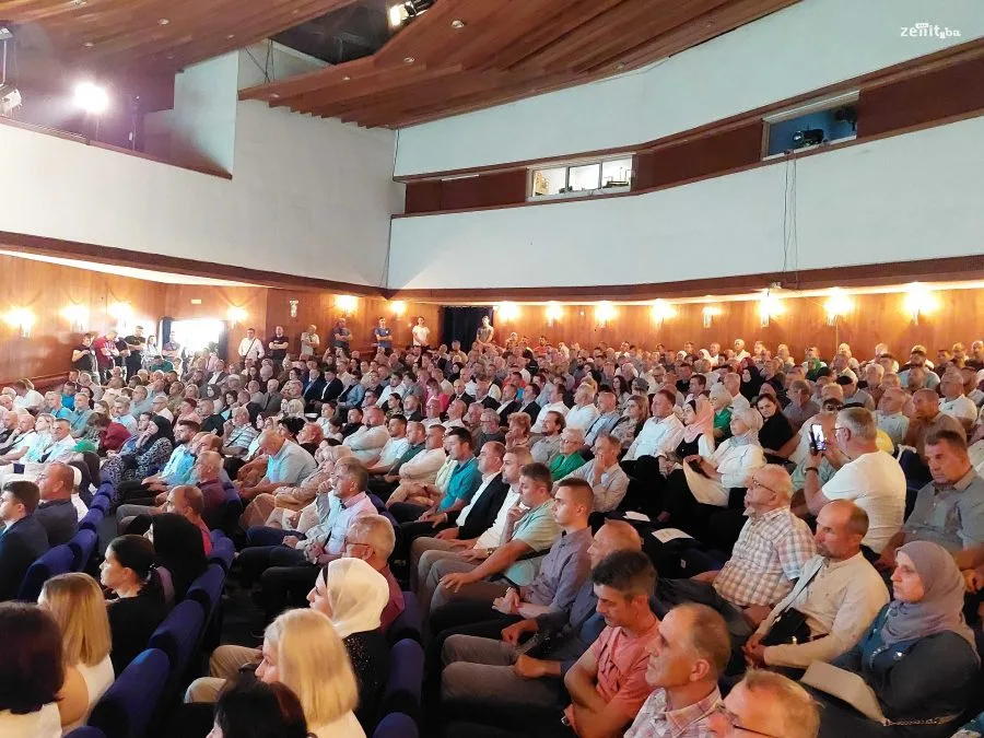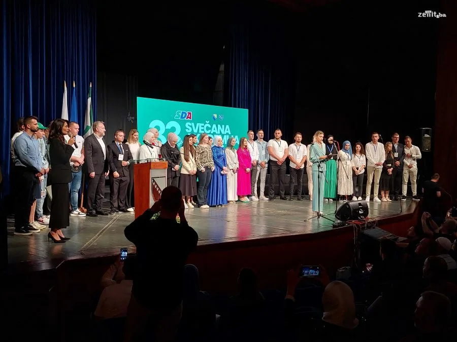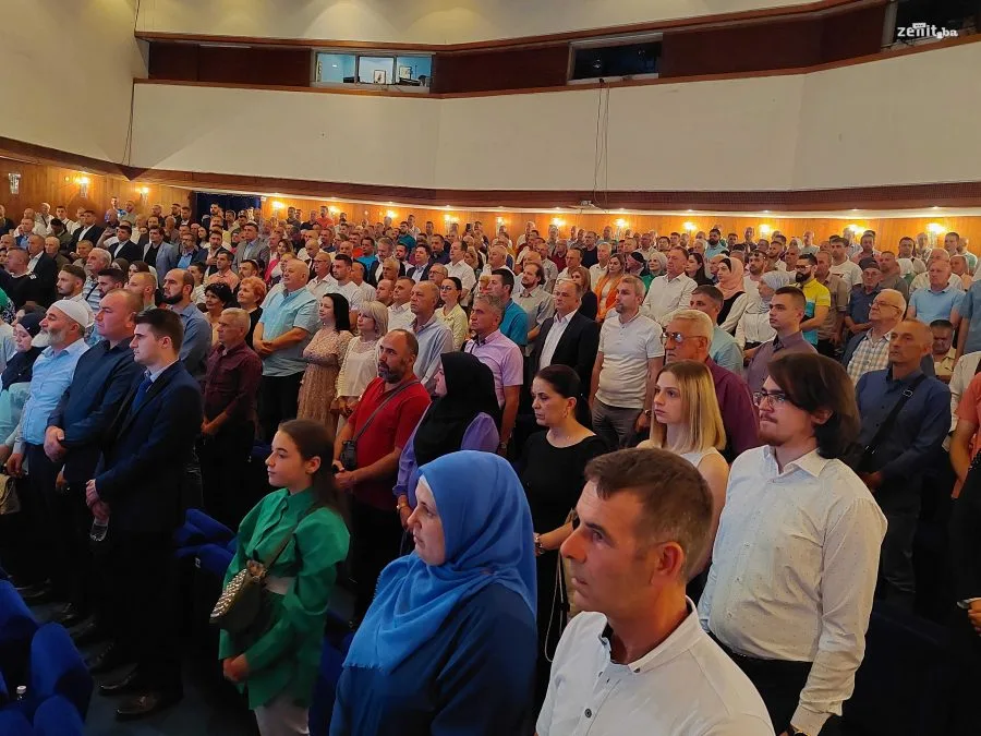 Velika dvorana zeničkog pozorišta bila je ispunjena do posljednjeg mjesta. Pomenutom jubileju prisustvovali su i članovi SDA iz Sarajeva delegat SDA Haris Zahiragić i predsjednik SDA Bakir Izetbegović.