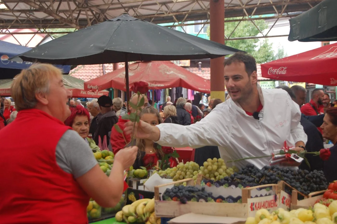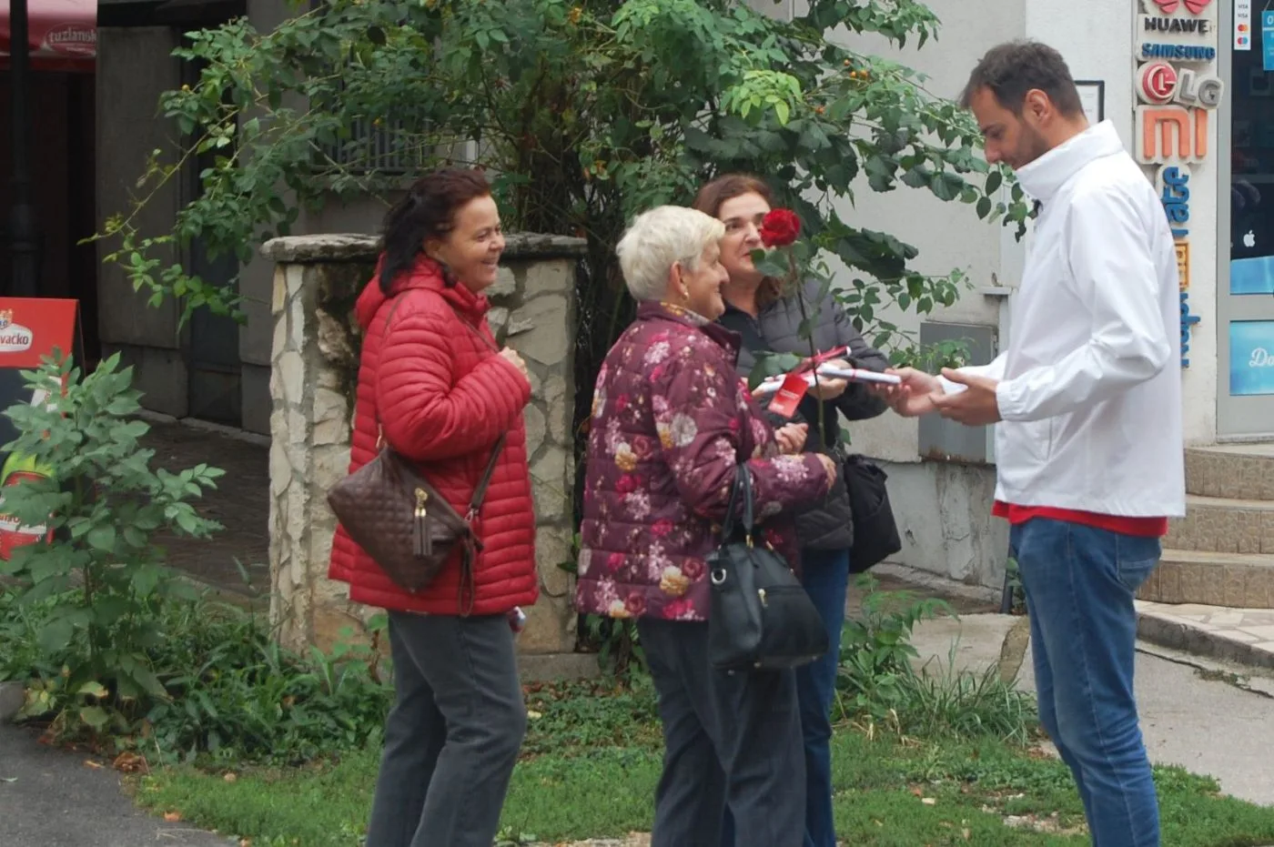 Tokom šetnje, naše sugrađanke su na poklon dobile ružu od kandidata za gradonačelnika kao simbol poštovanja, zahvalnosti i ljubavi.