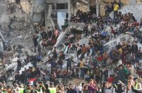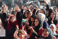 Dok su bučne mase mahale palestinskim zastavama, u južnom gradu Khan Younis, proslave je prigušila tekuća kriza širom Gaze. Većina od 2 miliona stanovnika Gaze, uključujući Eman i Hikmata Lawwu, raseljena je zbog rata, čitava područja gradova su sravnjena sa zemljom, a nedostatak pomoći i izbijanja sukoba i dalje muče svakodnevni život ljudi.