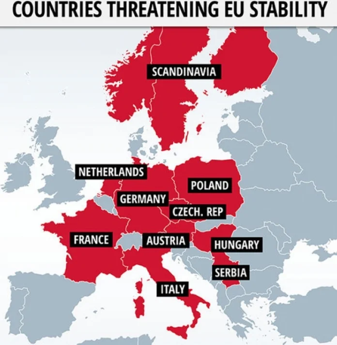 Među zemljama (ili dijelovima Evrope) koje prema njihovim viđenjima ugrožavaju EU su: Francuska, Holandija, Njemačka, Skandinavija, Austrija, Italija, Češka, Poljska, Mađarska i – Srbija.