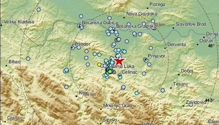 Područje Banje Luke sinoć je zatresla serija manjih potresa, a najjači je bio magnitude 4.1, javlja EMSC.