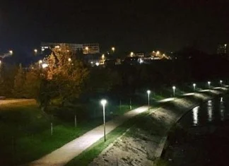 LED rasvjetom osvijetljena šetnica uz desnu obalu rijeke Bosne