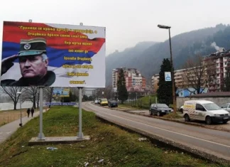 U Zvorniku pored magistralnog puta Zvornik-Bijeljina na bilbordu obostrano je postavljena fotografija bivšeg komandanta Glavnog štaba Vojske Republike Srpske generala Ratka Mladića.