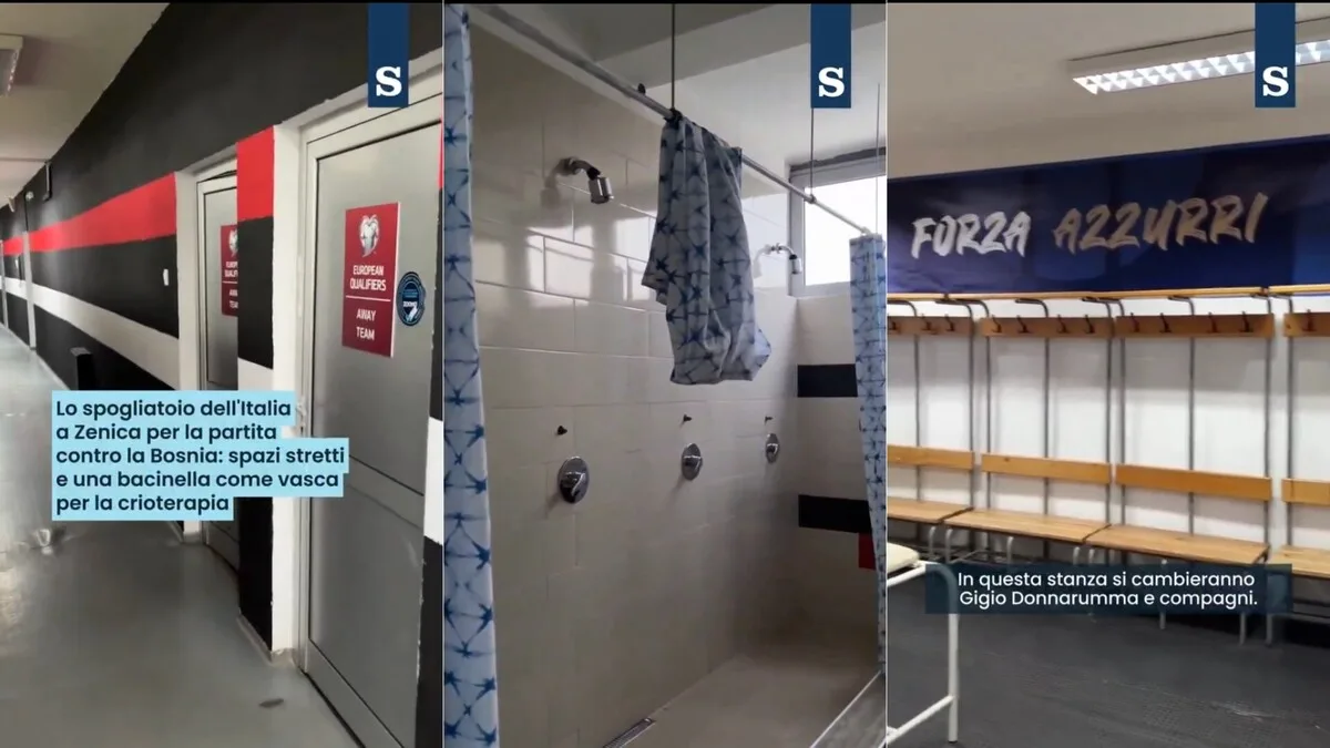 Le immagini dello spogliatoio dello stadio Bilino Polje di Zenica che ospita l’Italia nella finale dei playoff per i Mondiali 2026 contro la Bosnia-Erzegovina. Gli spazi sono molto ristretti e lontani dagli standard ai quali sono abituati i calciatori della Nazionale. La vasca… pic.twitter.com/Gn3lYQP65Q