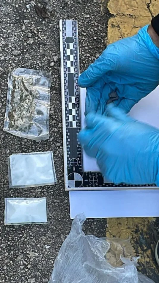 2) Praškasta materija koja asocira na opojnu drogu heroin, ukupne težine 111 grama