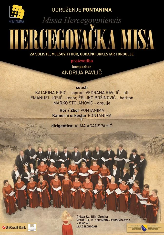 U nedjelju, 10. prosinca, u 19 sati u crkvi sv. Ilije Proroka u Zenici bit će koncertna izvedba HERCEGOVAČKE MISE (Missa Hercegoviensis) kompozitora Andrije Pavliča.