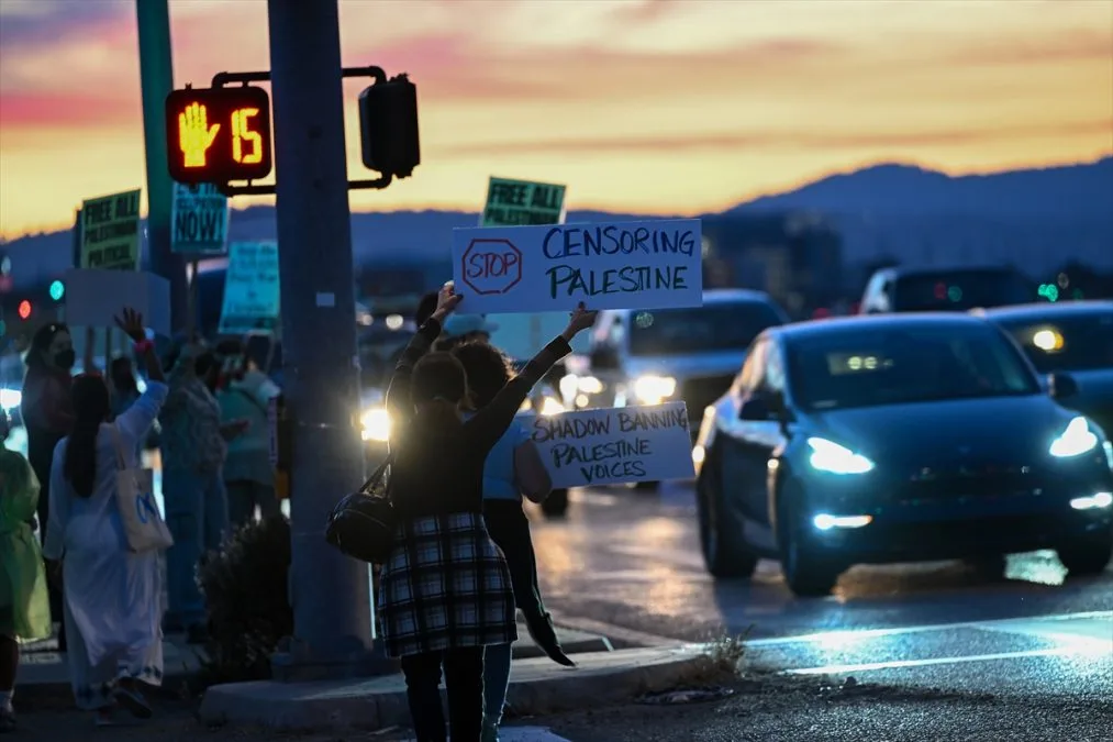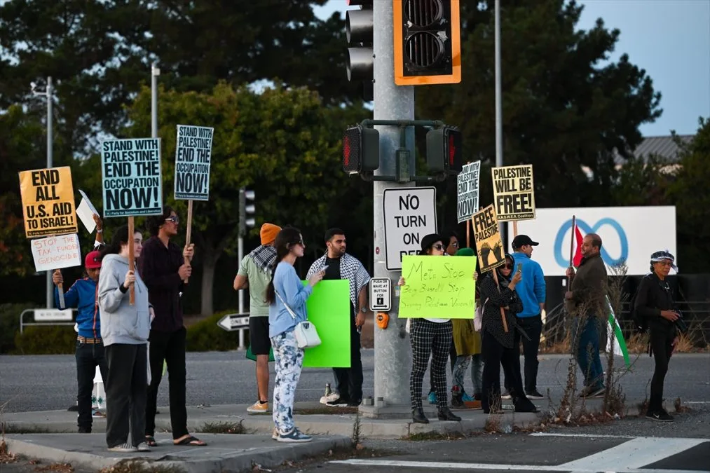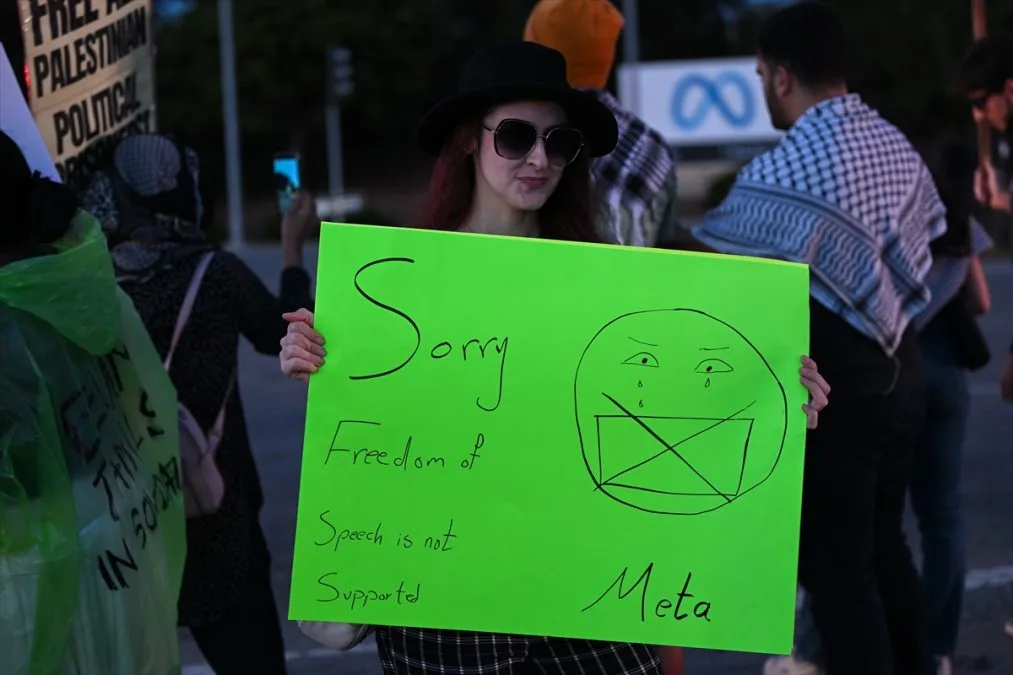 Grupa demonstranata okupila se u petak ispred sjedišta Mete (Facebook) kako bi protestovali protiv vlasnika Marka Zakerberga i Metine cenzure sadržaja o Palestini na društvenim platformama u Sjedinjenim Američkim Državama (SAD).