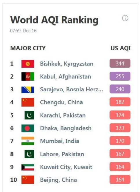 Na prvom mestu je Bishkek sa 344, kojeg slijedi Kabul sa 255.