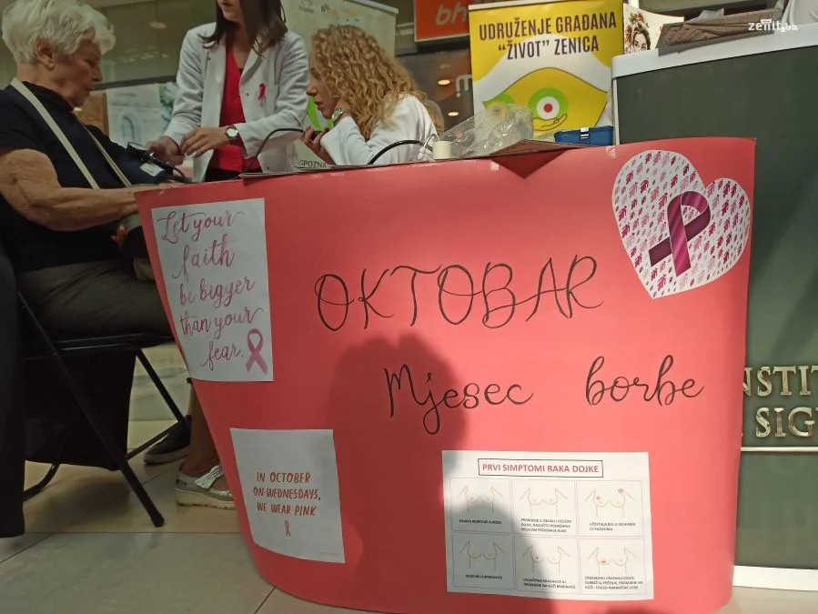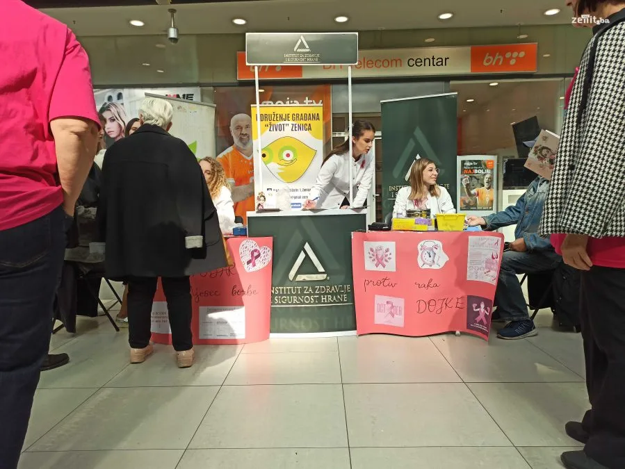 Kroz druženje, dijeljenje letaka sa korisnim informacijama, ali i mjerenjem krvnog pritiska i šećera, građanima Zenice se još jednom skrenula pažnja na važnost preventivnog pregleda kada je u pitanju karcinom dojke.
