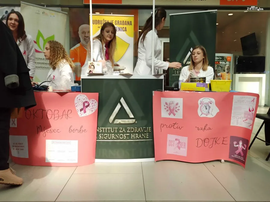 Udruženje “Život” Zenica, u saradnji sa Institutom za zdravlje i sigurnost hrane, te učenicama medicinske škole obilježilo je danas, u Zenica city centru, “Ružičasti oktobar” – Međunarodni mjesec borbe protiv karcinoma dojke.