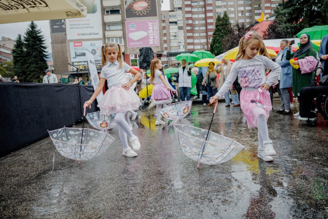 Program je počeo u 11 sati ispred robne kuće Bosanka, a mališani su, uz podršku roditelja i organizatora, uživali u edukativno-kreativnim, zabavnim i sportskim aktivnostima. Iako je kiša povremeno remetila planirane radionice na otvorenom, organizatori su se brzo prilagodili i omogućili da se program uspješno realizuje.
