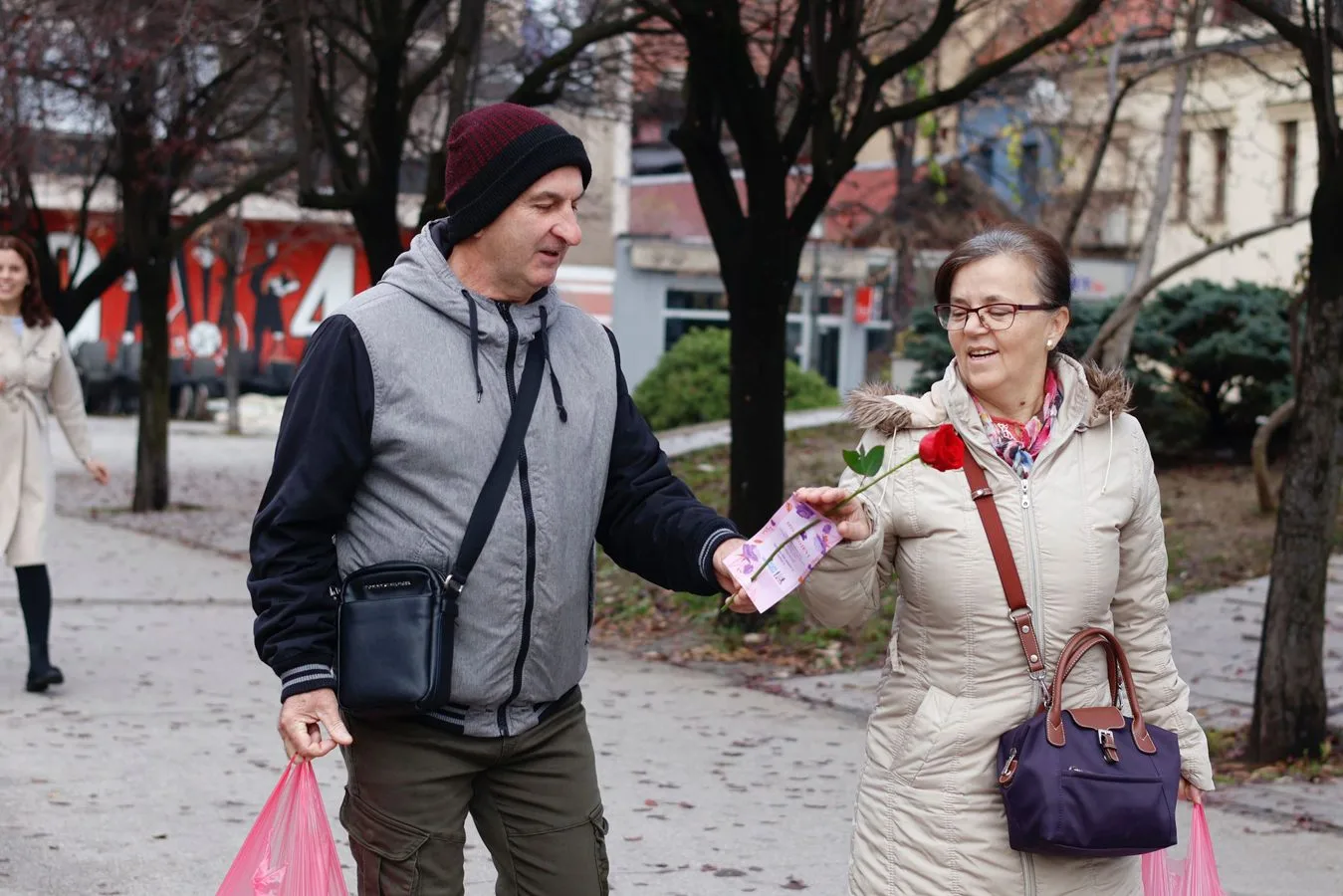 Mladi volonteri su muškarcima u Zenici dijelili ruže s porukom da ih poklone nekoj ženi u svom životu – samo zato. Na trakama koje su pratile ruže ispisani su SOS brojevi i linije za pomoć ženama koje su žrtve nasilja. Ovaj simboličan gest nosi snažnu poruku i ohrabrenje za izgradnju društva koje osuđuje svaki oblik nasilja i promoviše poštovanje i ravnopravnost.