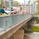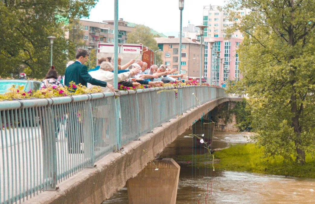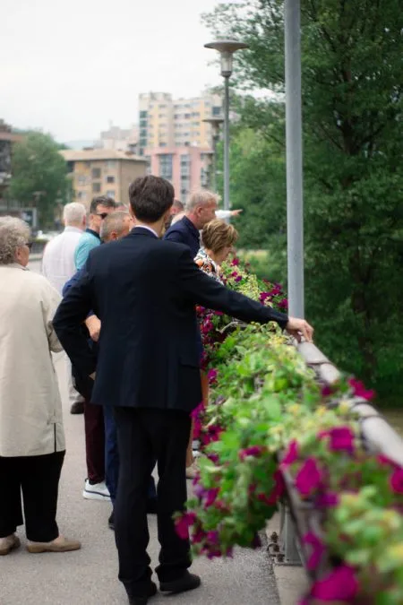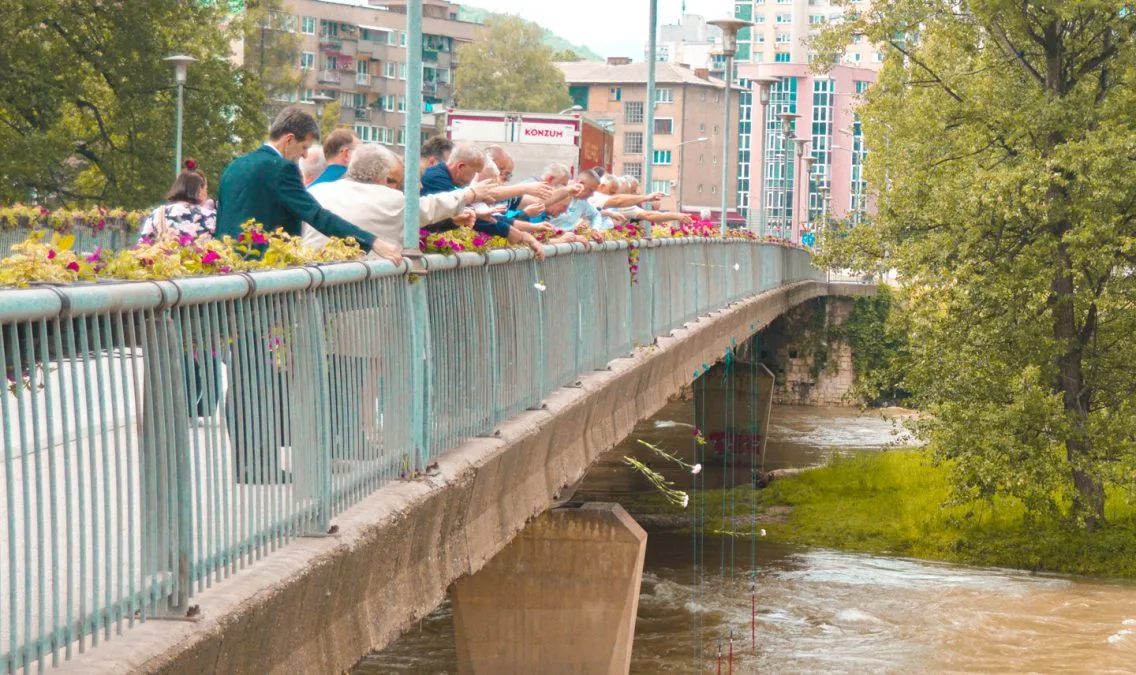 Posjeta školi završena je bacanjem cvijeća u rijeku Bosnu u znak sjećanja na šestoro preminulih učenika IV-3 iz generacije 1977-1981.