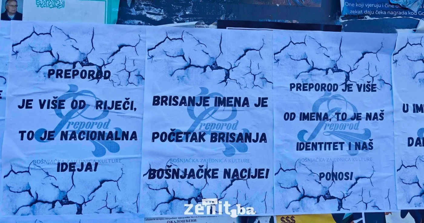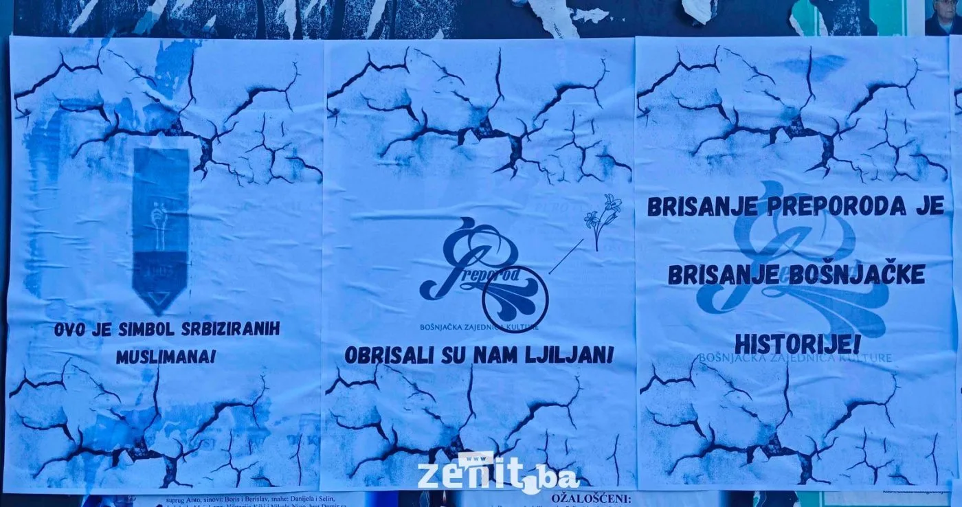 Na plakatima se između ostalog može pročitati: “Ovo je simbol srbiziranih muslimana!”, “Obrisali su nam ljiljane!” i “Brisanje Preporoda je brisanje bošnjačke historije!”.