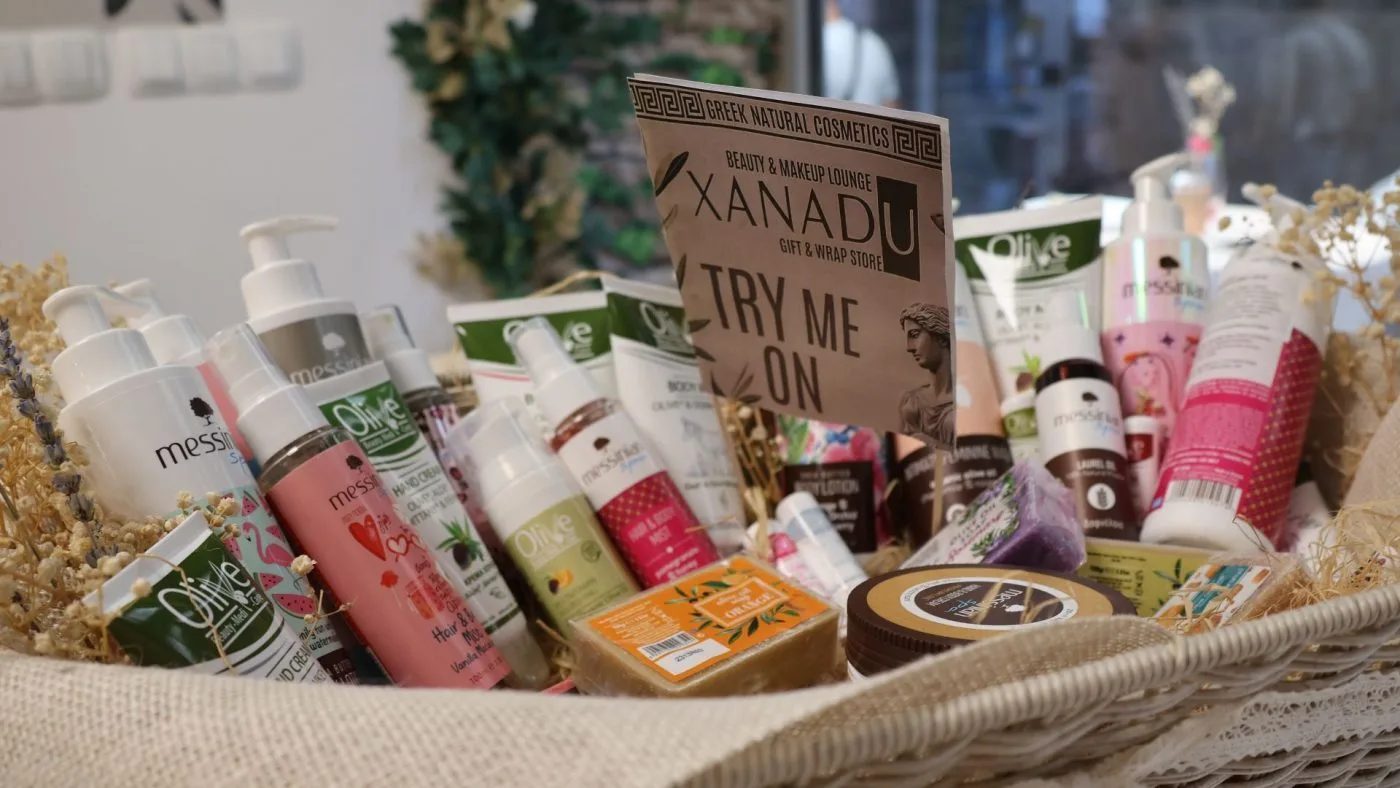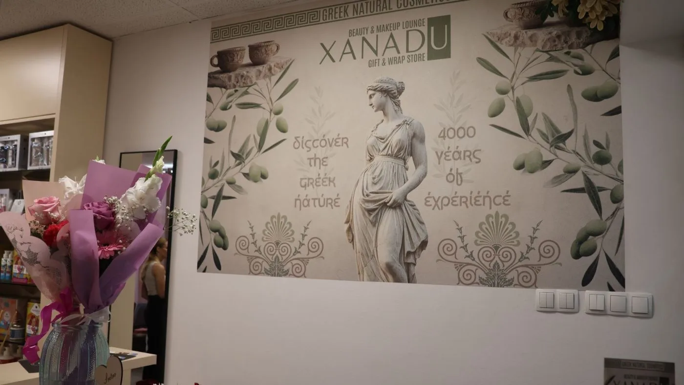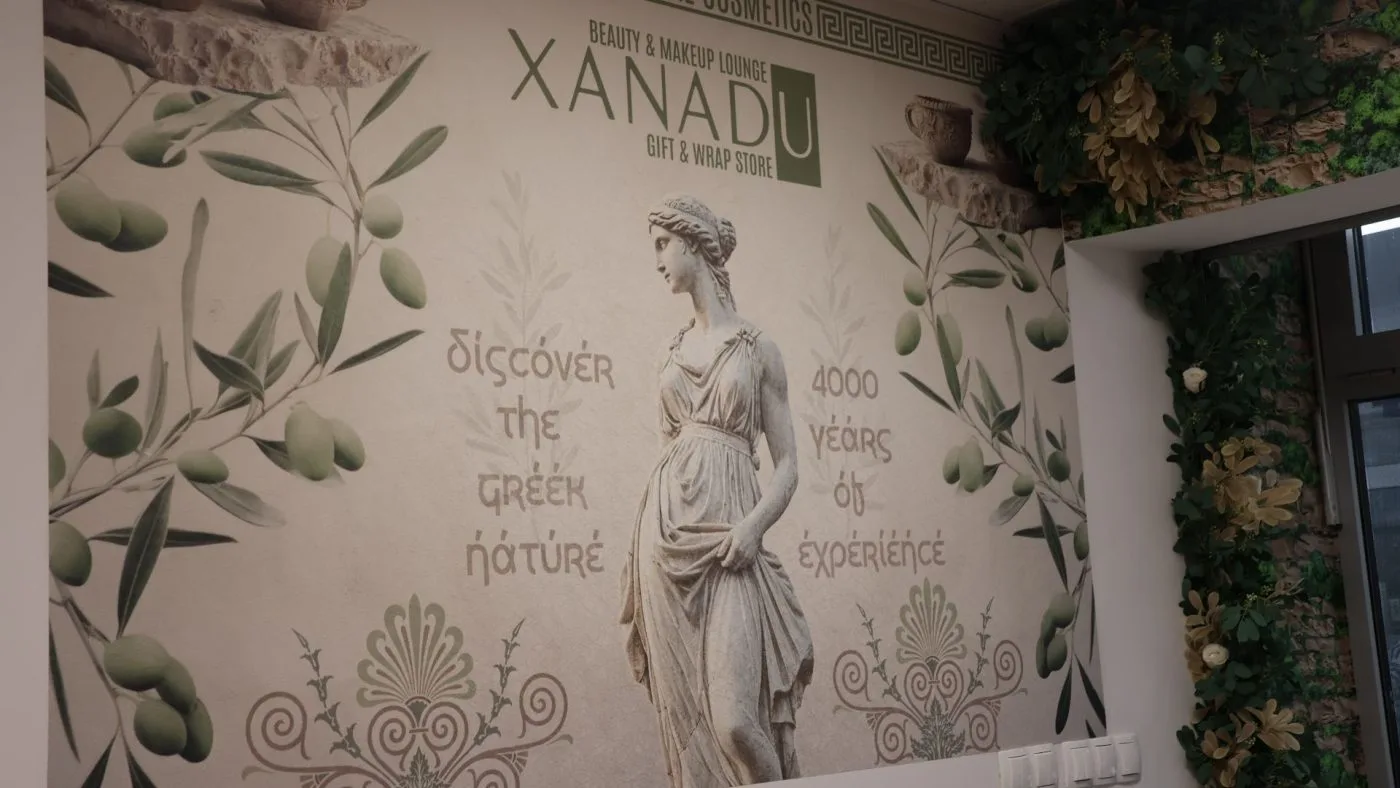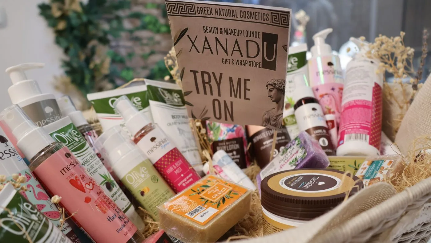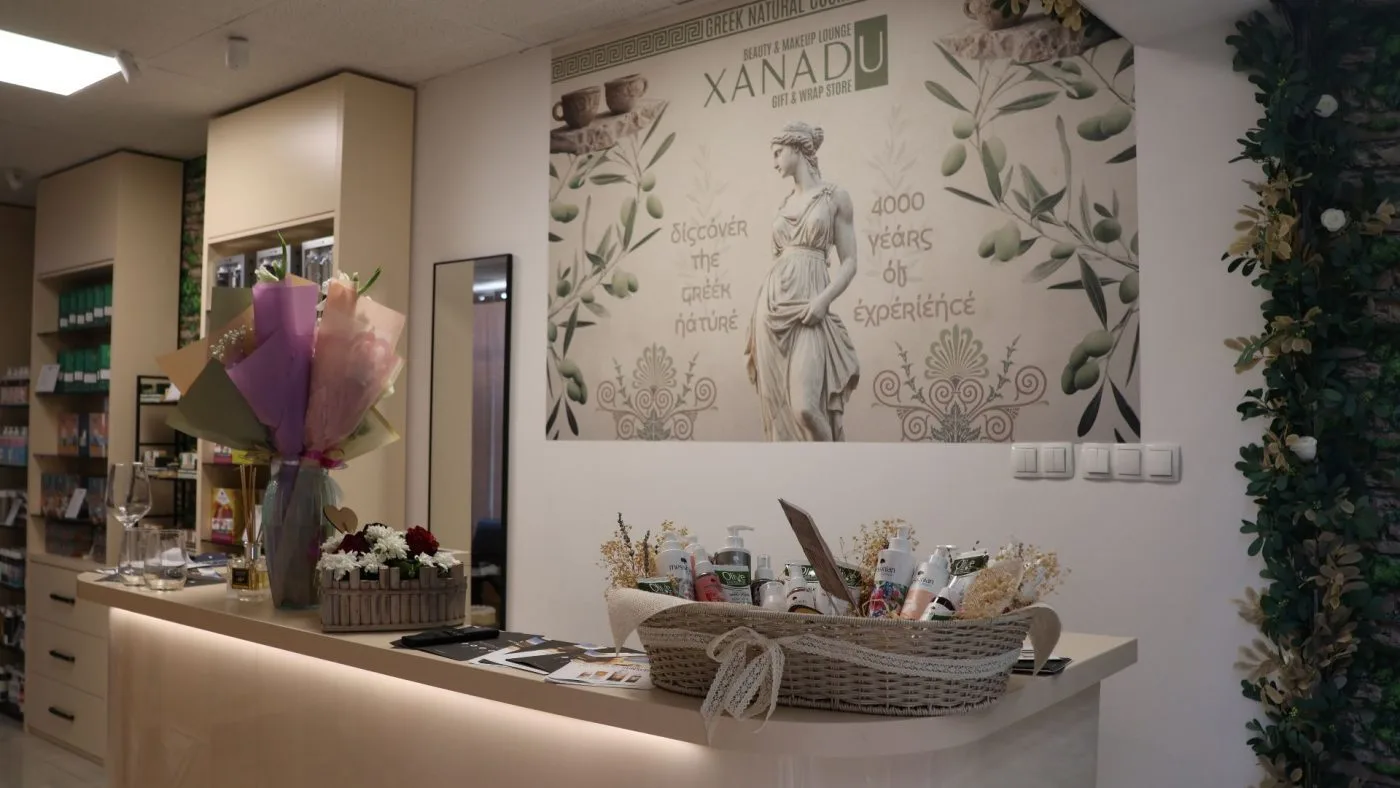 Police shopa krase proizvodi koji nose duh juga, konkretno Grčke: vrhunska maslinova ulja, prirodna kozmetika, ručno rađeni sapuni, med te unikatni poklon setovi. Pored toga, XANADU nudi i profesionalni make-up lounge – prostor posvećen ljepoti, njezi i personaliziranim uslugama. Više od trgovine