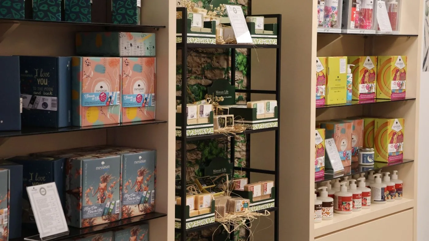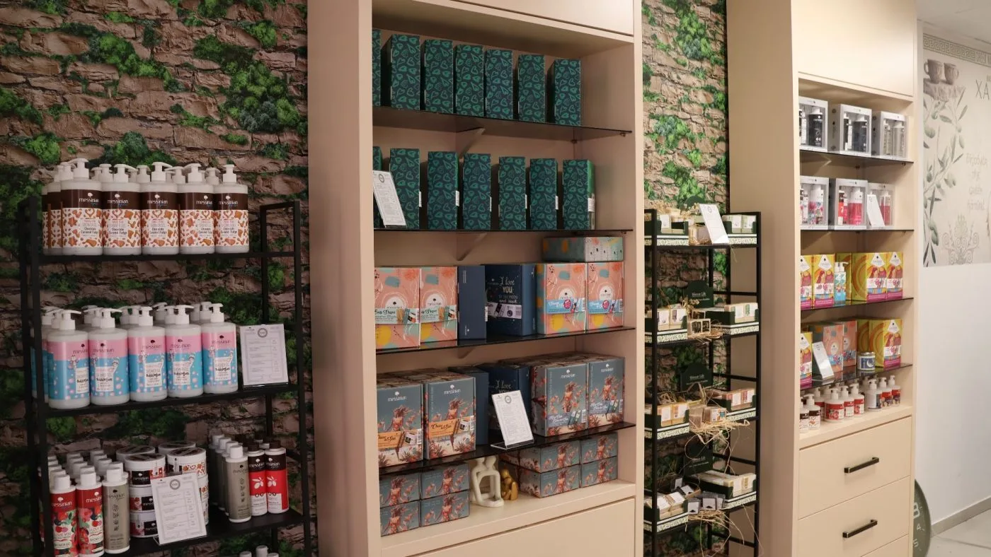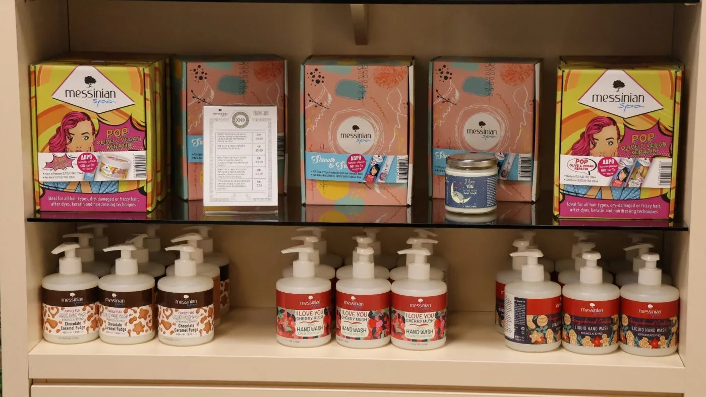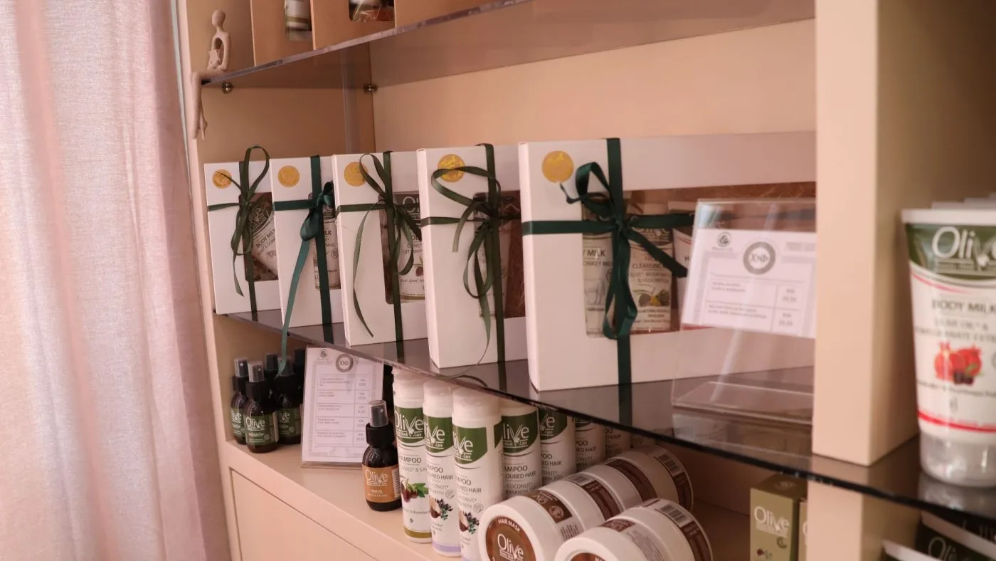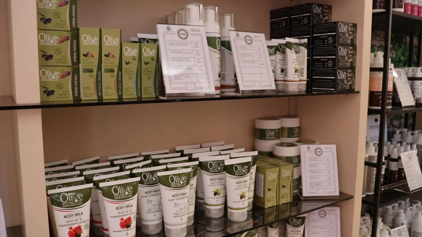 Police shopa krase proizvodi koji nose duh juga, konkretno Grčke: vrhunska maslinova ulja, prirodna kozmetika, ručno rađeni sapuni, med te unikatni poklon setovi. Pored toga, XANADU nudi i profesionalni make-up lounge – prostor posvećen ljepoti, njezi i personaliziranim uslugama. Više od trgovine