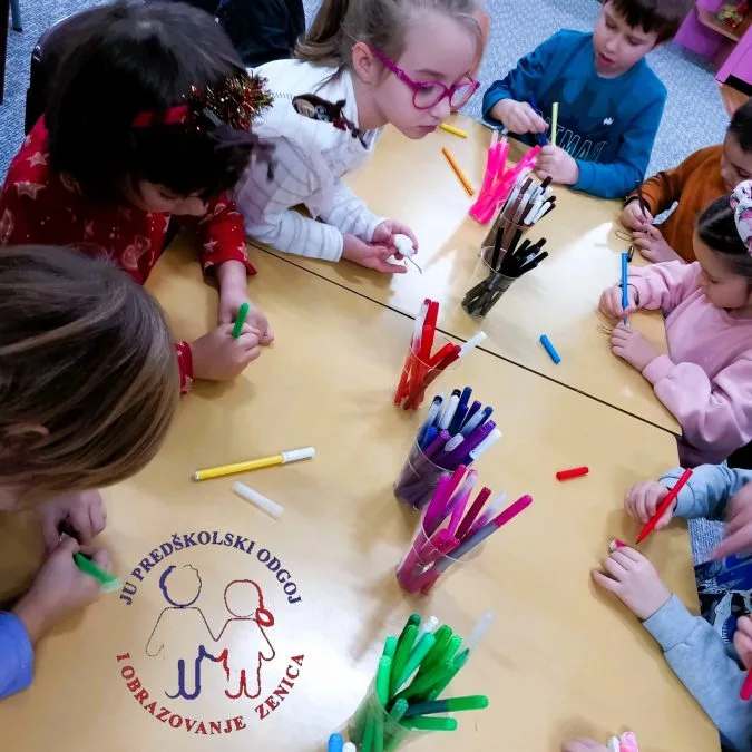 Mama Andrijana je djeci pročitala priču “Povratak zaboravljenog Snješka”, a nakon toga uslijedila je radionica, gdje su djeca bojila gipsane ukrase za jelku, a potom su napravili ukrase od papira.