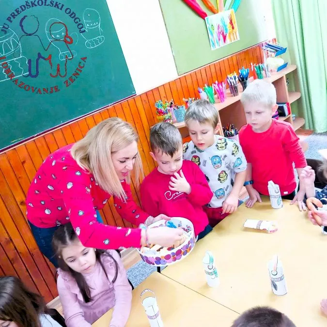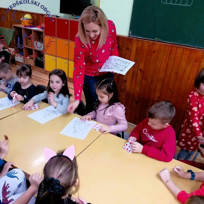 Mama Emme Goletić, gospođa Andrijana, održala je u starijoj grupi vrtića ”Radost” radionicu na temu “Izrada novogodišnjih ukrasa”.