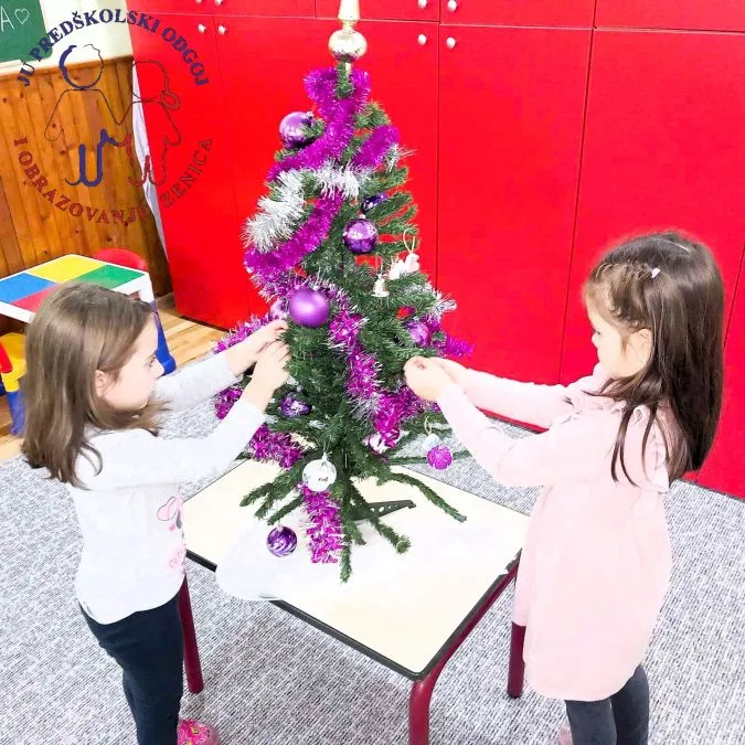 Zajedno su okitili grupnu jelku, počastili se ukusnim keksićima koje su Emma i njena mama pripremili za drugare.