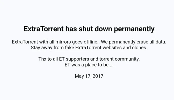 U historiju odlazi još jedna internetska stranica za distribuciju za preuzimanje torrent datoteka, ExtraTorrent.