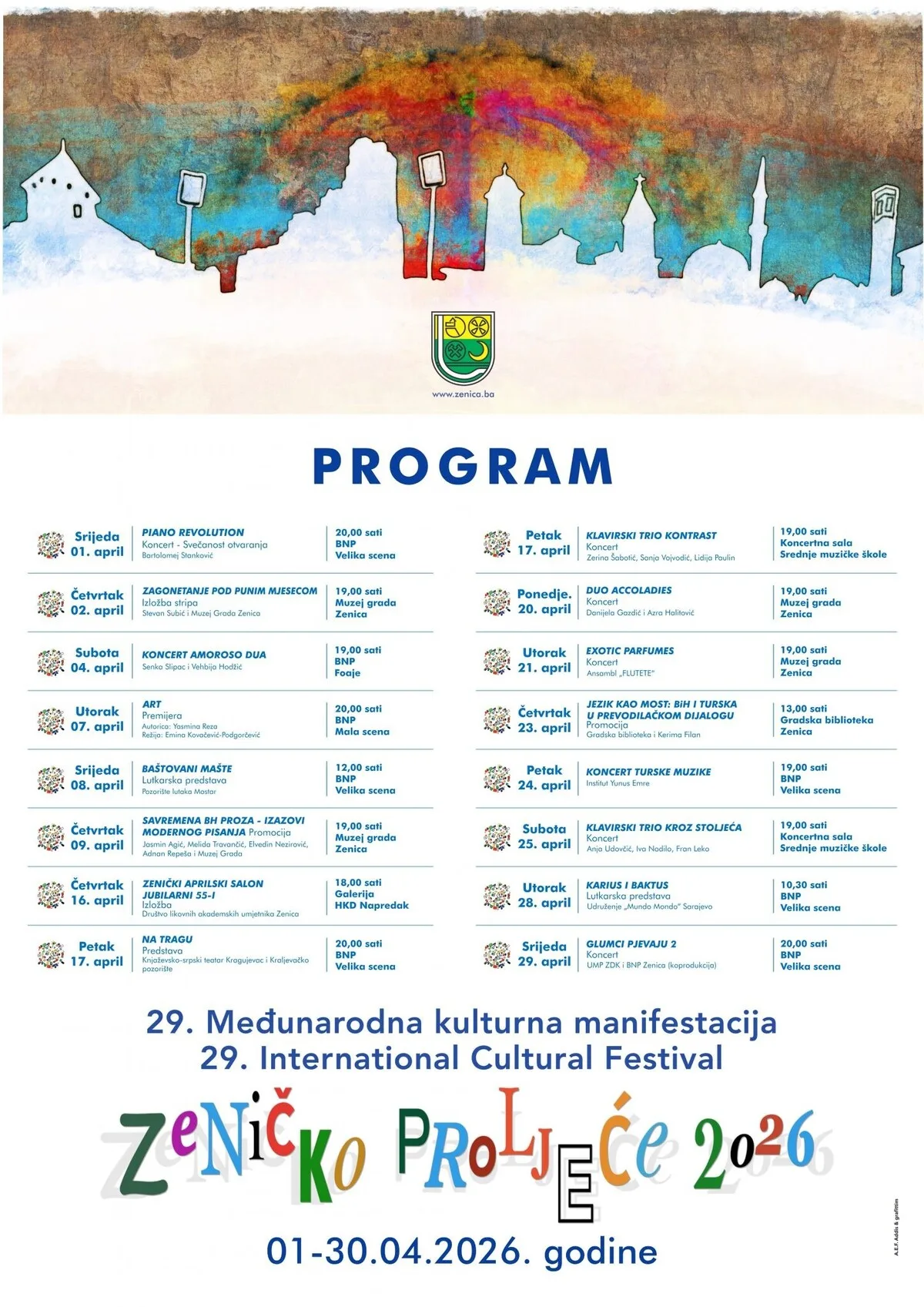 Pozivamo sve građane i goste da budu dio ove jedinstvene kulturne priče i uživaju u „Zeničkom proljeću 2026“.