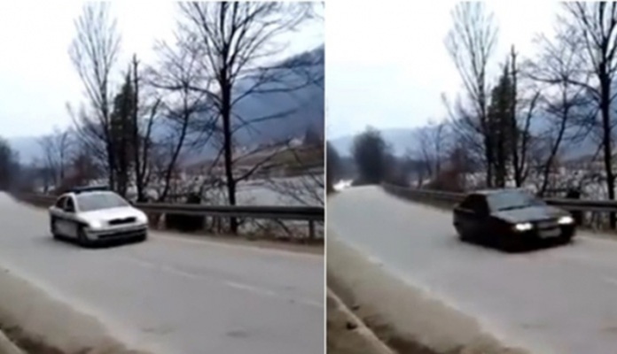Amaterski video-snimak pojavio se danas na zavidovićkom portalu Zdici.info, a na video-snimku vidi se kako policijski automobil juri za crnim BMW-om na regionalnom putu Zavidovići-Maglaj-Doboj.