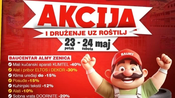 Kompanija ALMY najavljuje veliki dvodnevni događaj uz neodoljive popuste, prezentacije i druženje za sve posjetioce! Tokom petka i subote, 23. i 24. maja, ALMY vas poziva da posjetite njihove poslovnice i iskoristite brojne pogodnosti u Baucentru Zenica te na benzinskim pumpama u Zenici, Sarajevu i Zavidovićima.