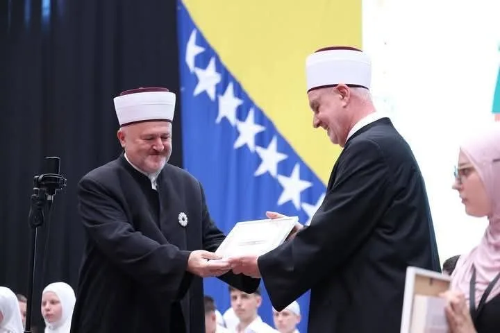 Reisul-ulema je uručio priznanja Hananu Karaliću, pobjedniku takmičenja na nivou Muftijstva zeničkog, odnosno predstavniku Muftijstva na takmičenju na nivou Rijaseta i Ajši Šušnjević, pobjednici takmičenja na nivou Rijaseta.