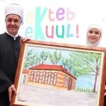 Polaznica mekteba Emina Mahmić je reisul-ulemi uručila kao poklon svoj likovni rad Sultan Ahmedova medrese.