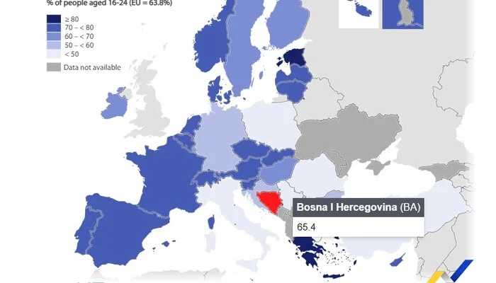 Najveći udio mladih korisnika zabilježen je u Grčkoj (83,5%), Estoniji (82,8%) i Češkoj (78,5%).