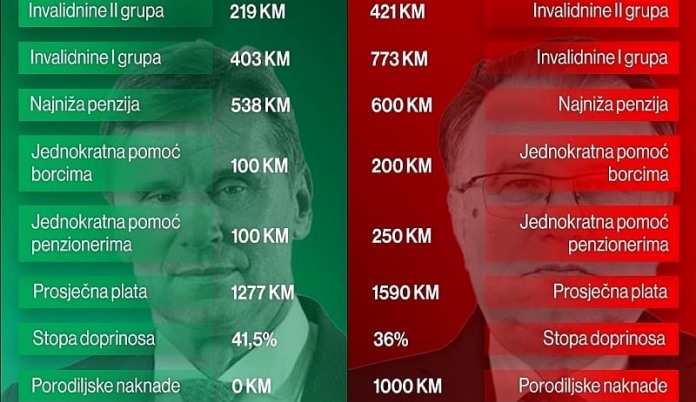 Tako su naveli da su, pri preuzimanju federalne vlasti (op.a. od tadašnjeg premijera Fadila Novalića), zatekli iznos minimalne plate od 596 KM dok ona sada iznosi 1.000 KM te kako je najniža penzija iznosila 538 KM, a sada je 600 KM.