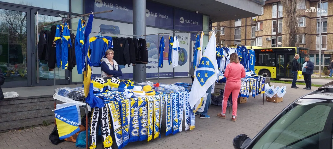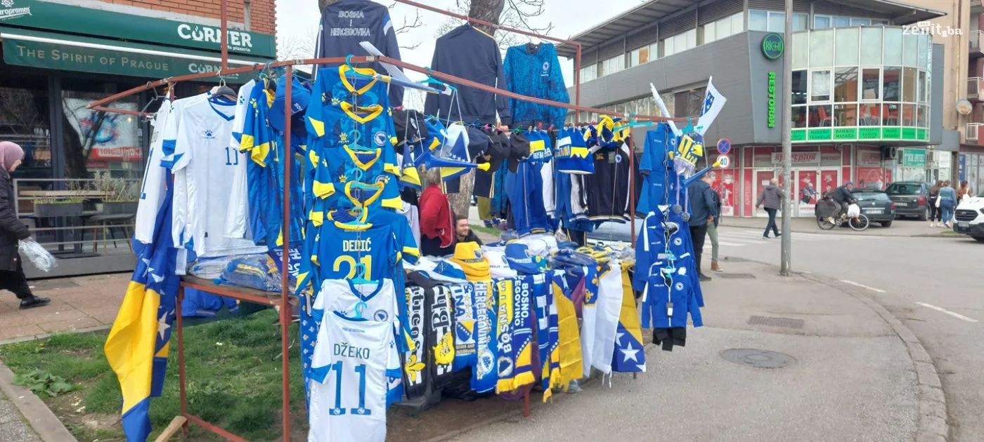 Na nekoliko lokacija u gradu postavljeni su štandovi gdje se mogu kupiti šalovi, kape, majice i ostali rekviziti reprezentacije BiH.