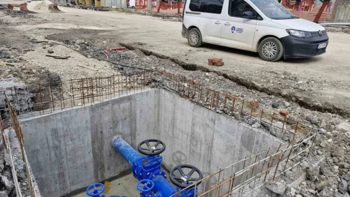 Radovi su nastavljeni izgradnjom priključne vodovodne liniju promjera DN 80 prema Bulevaru Ezhera Eze Arnautovića, a bit će izvršeno i izmještanje vodomjera iz obližnjih stambenih objekata na javnu površinu.