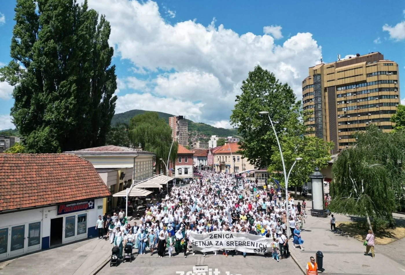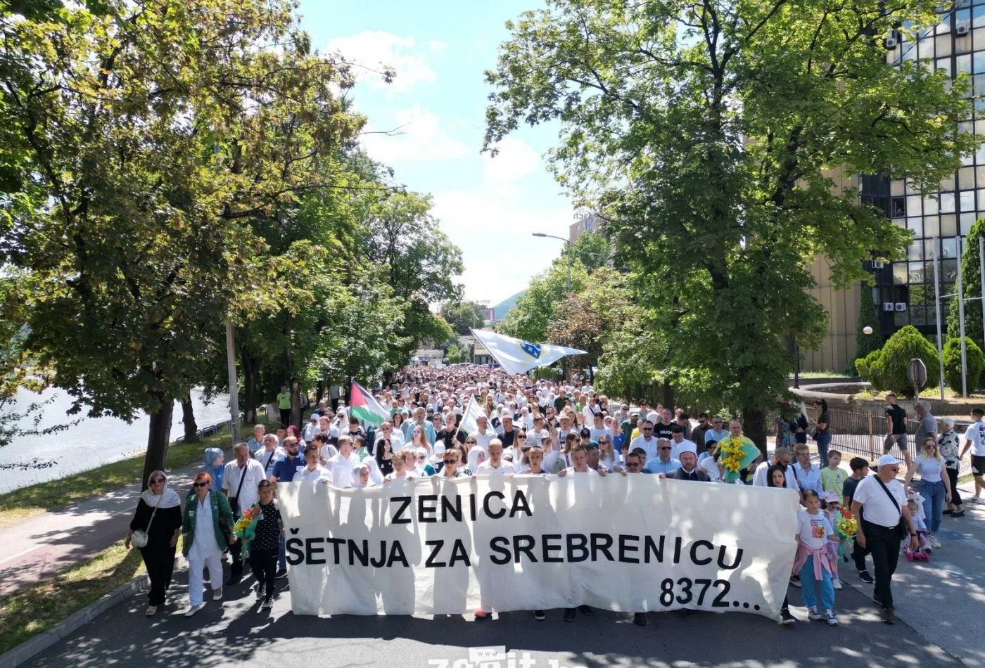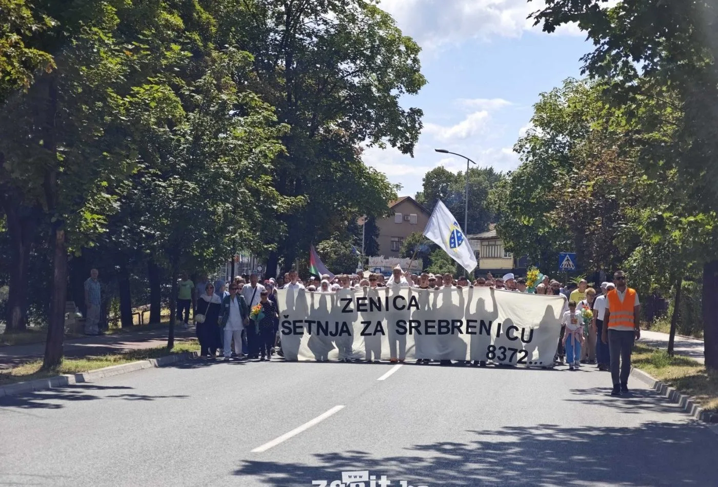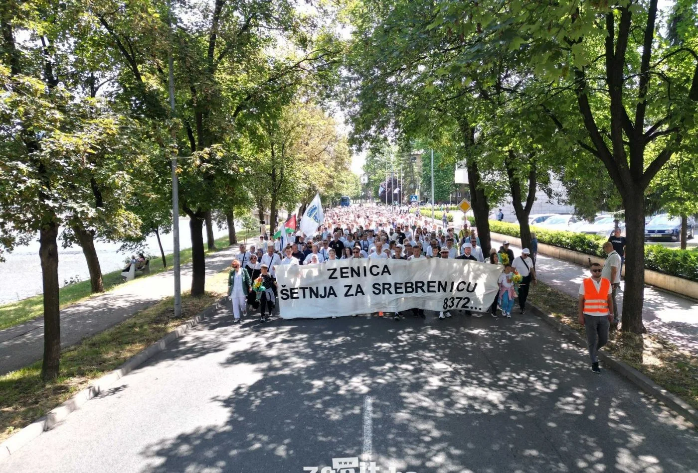 Tradicionalna mirna šetnja održana je danas, 11. jula, s početkom u 11 sati. Okupljanje učesnika bilo je na Trgu Alije Izetbegovića, odakle se kolona kretala prema kružnom toku, potom Bulevarom i ulicom Safvet-bega Bašagića, zatim Glavnom gradskom magistralom i Titovom ulicom, sve do Kamenog spavača, gdje je upriličeno simbolično odavanje počasti svim žrtvama genocida.
