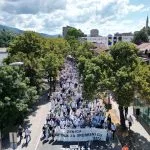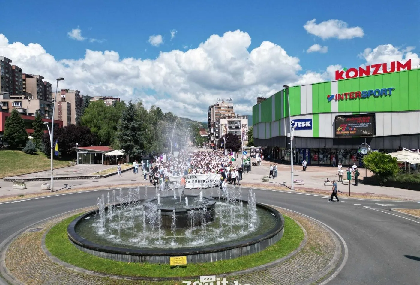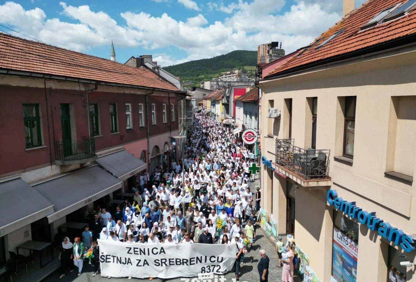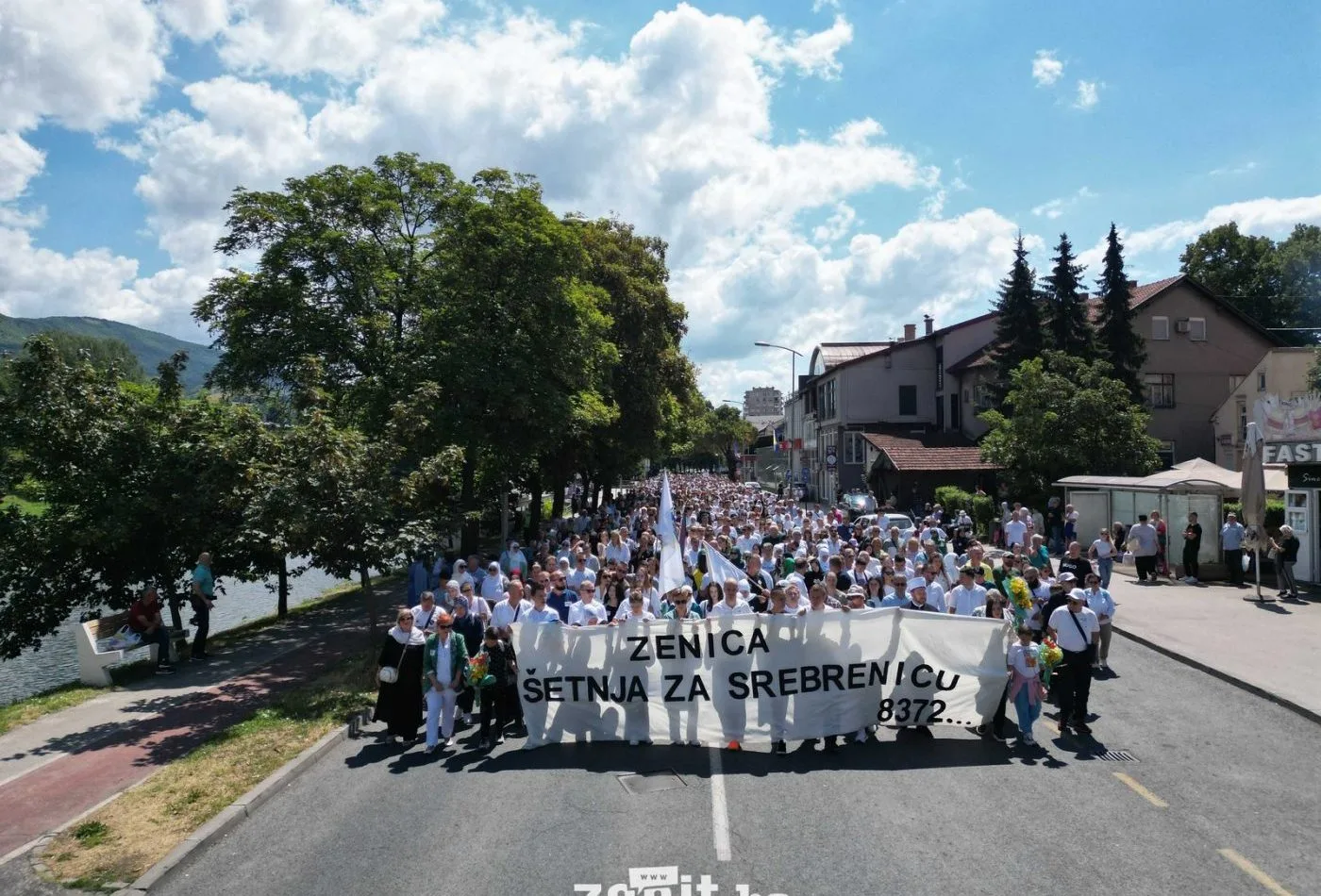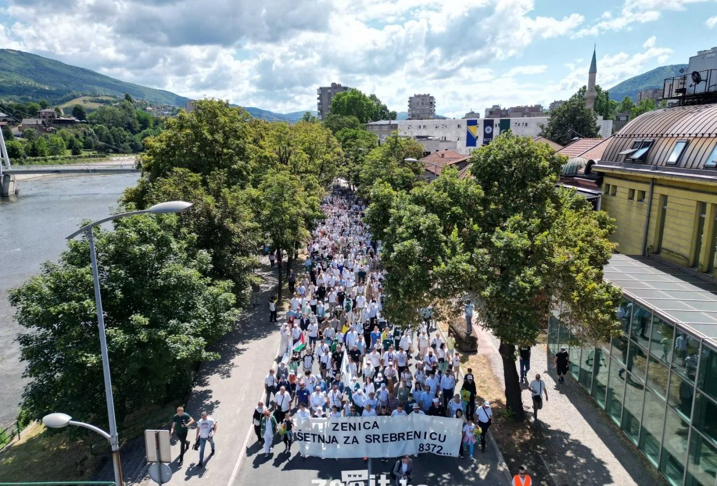 Tradicionalna mirna šetnja održana je danas, 11. jula, s početkom u 11 sati. Okupljanje učesnika bilo je na Trgu Alije Izetbegovića, odakle se kolona kretala prema kružnom toku, potom Bulevarom i ulicom Safvet-bega Bašagića, zatim Glavnom gradskom magistralom i Titovom ulicom, sve do Kamenog spavača, gdje je upriličeno simbolično odavanje počasti svim žrtvama genocida.