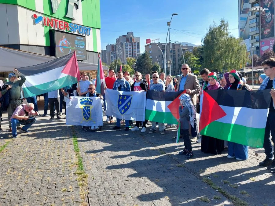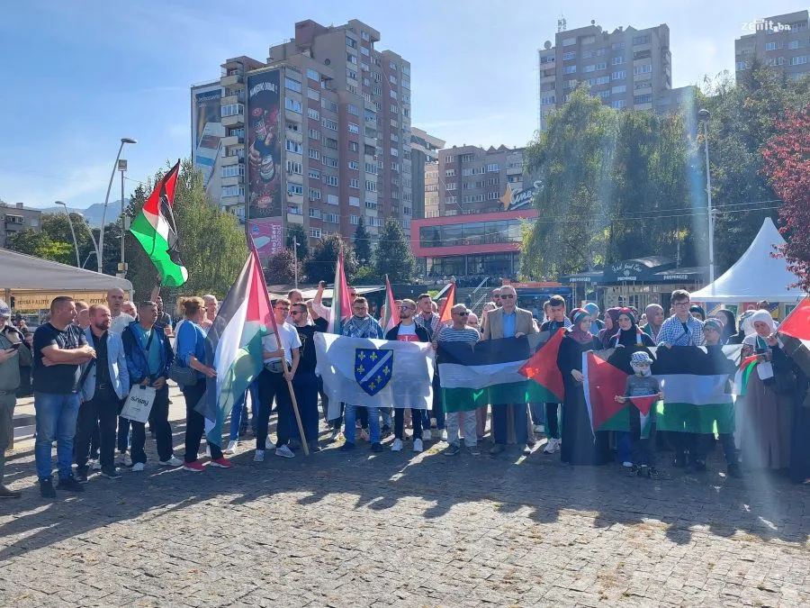 Jučer je u Sarajevu organizovano mirno okupljanje u kojem su građani izrazili protest protiv ratnih dešavanja koja traju od subote na području Gaze, ali i podršku palestinskom narodu koji iz sata u sat proživljavaju traumatične situacije.