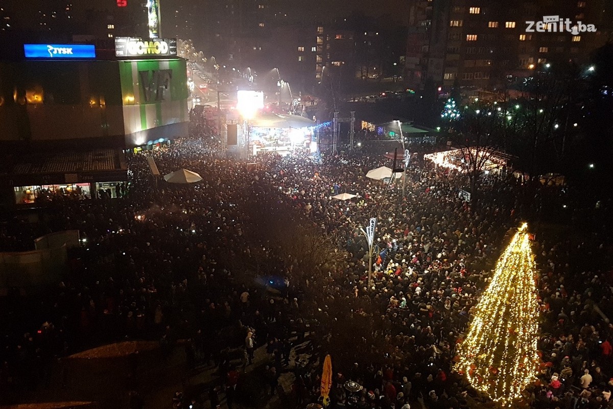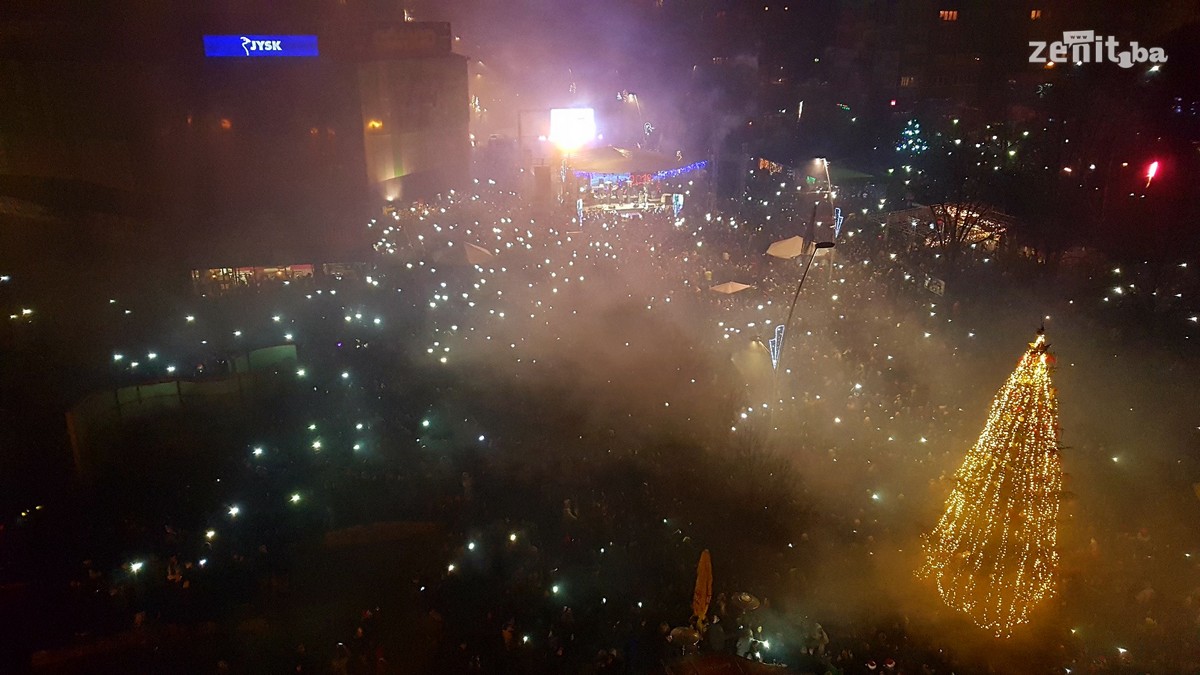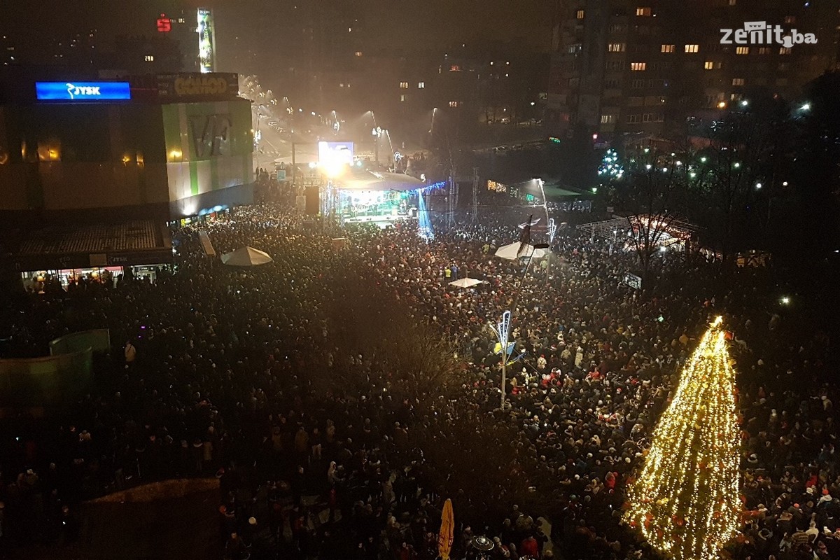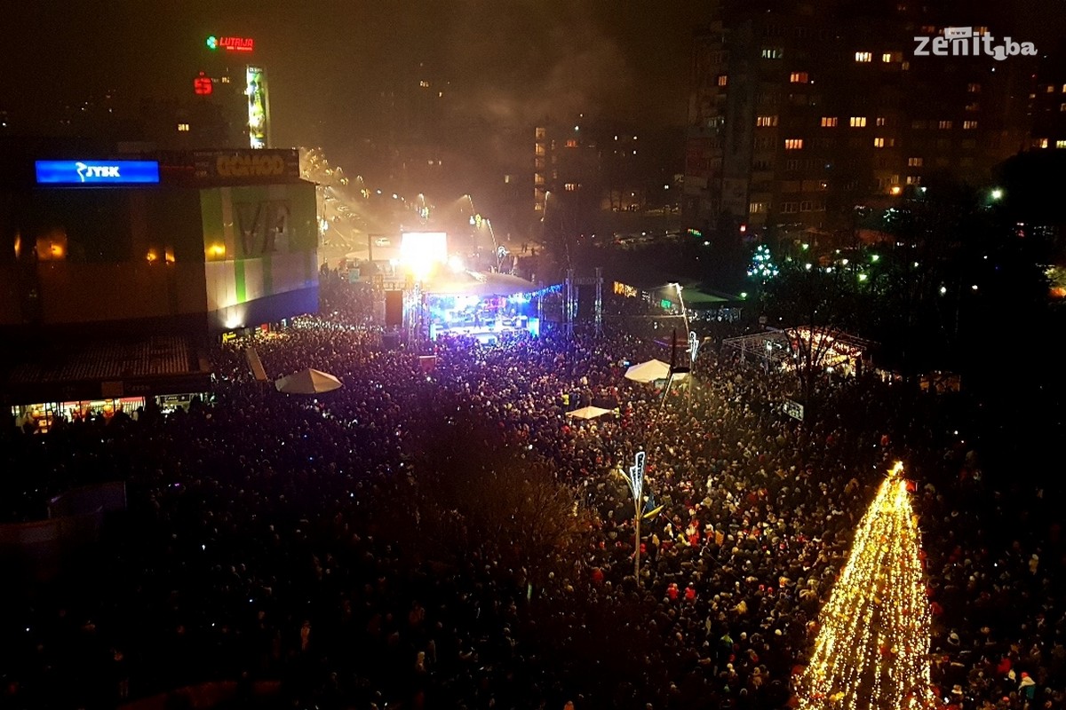 Hiljade Zeničana i turista dočekali su Novu godinu na Trgu Alije Izetbegovića u Zenici.