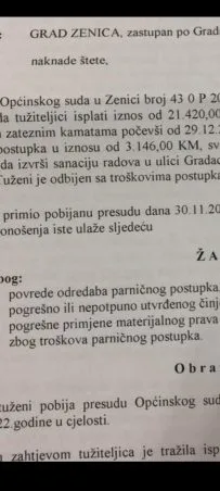 Zeničanka dobila spor protiv Grada Zenica, a Grad odbija isplatiti odštetu (FOTO)