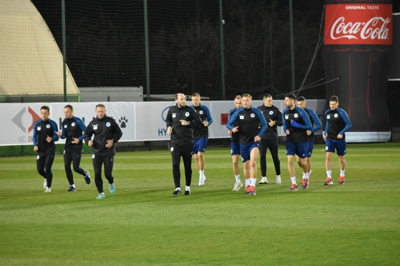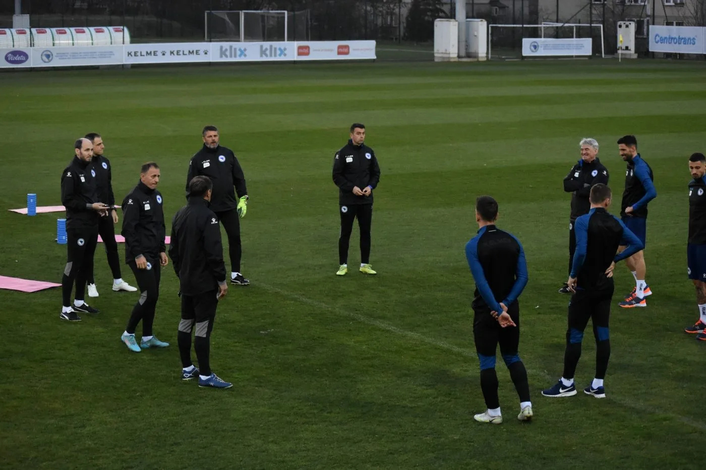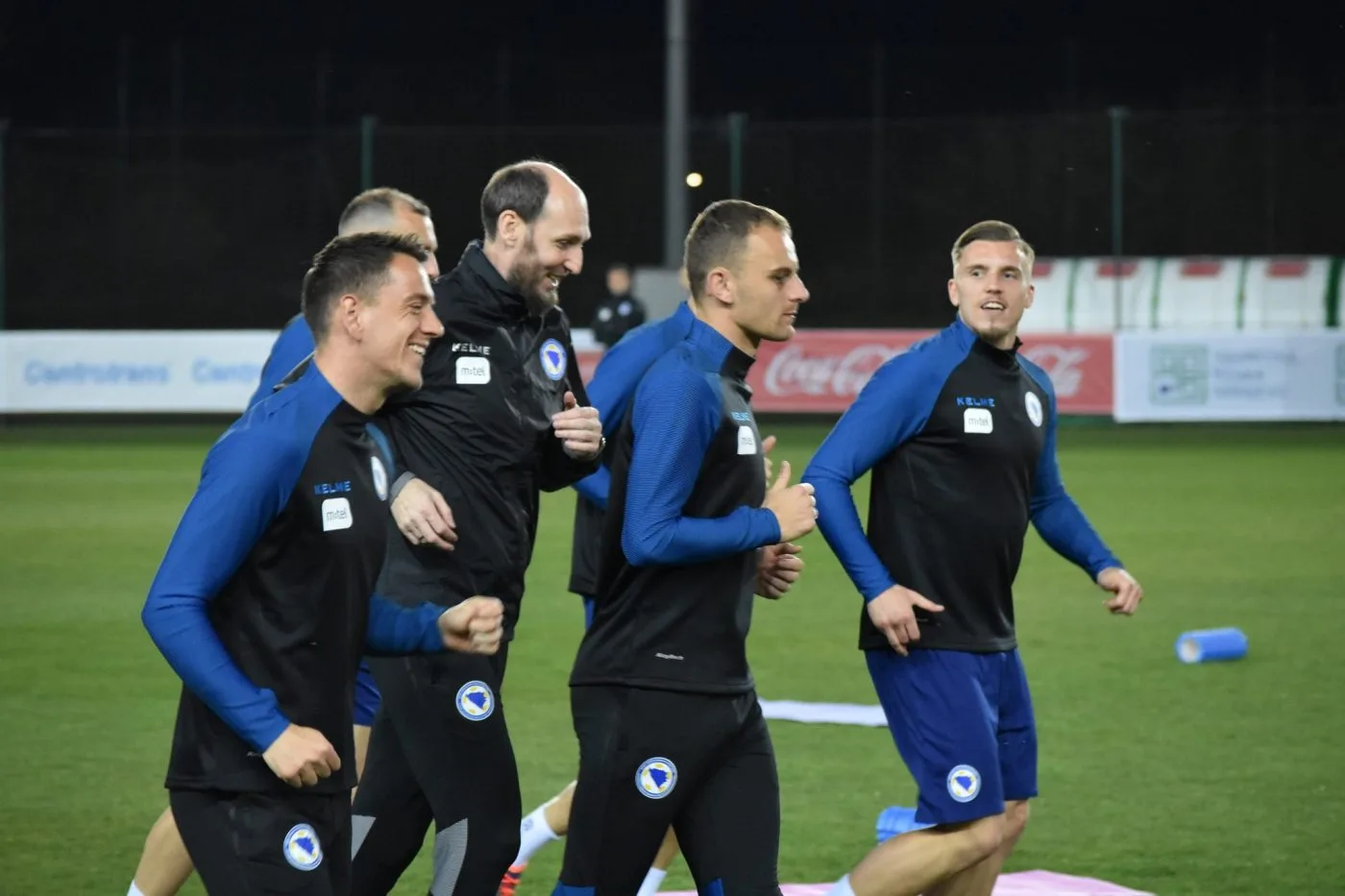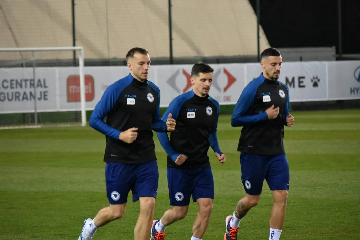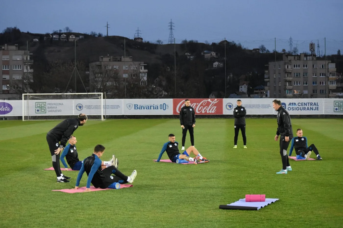 Selektoru Faruku Hadžibegiću na večerašnjem treningu su na raspolaganju bili Ibrahim Šehić, Siniša Saničanin, Amir Hadžiahmetović, Rade Krunić, Gojko Cimirot, Ermedin Demirović, Kenan Kodro, Nemanja Bilbija i Jasmin Mešanović.
